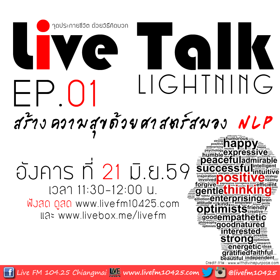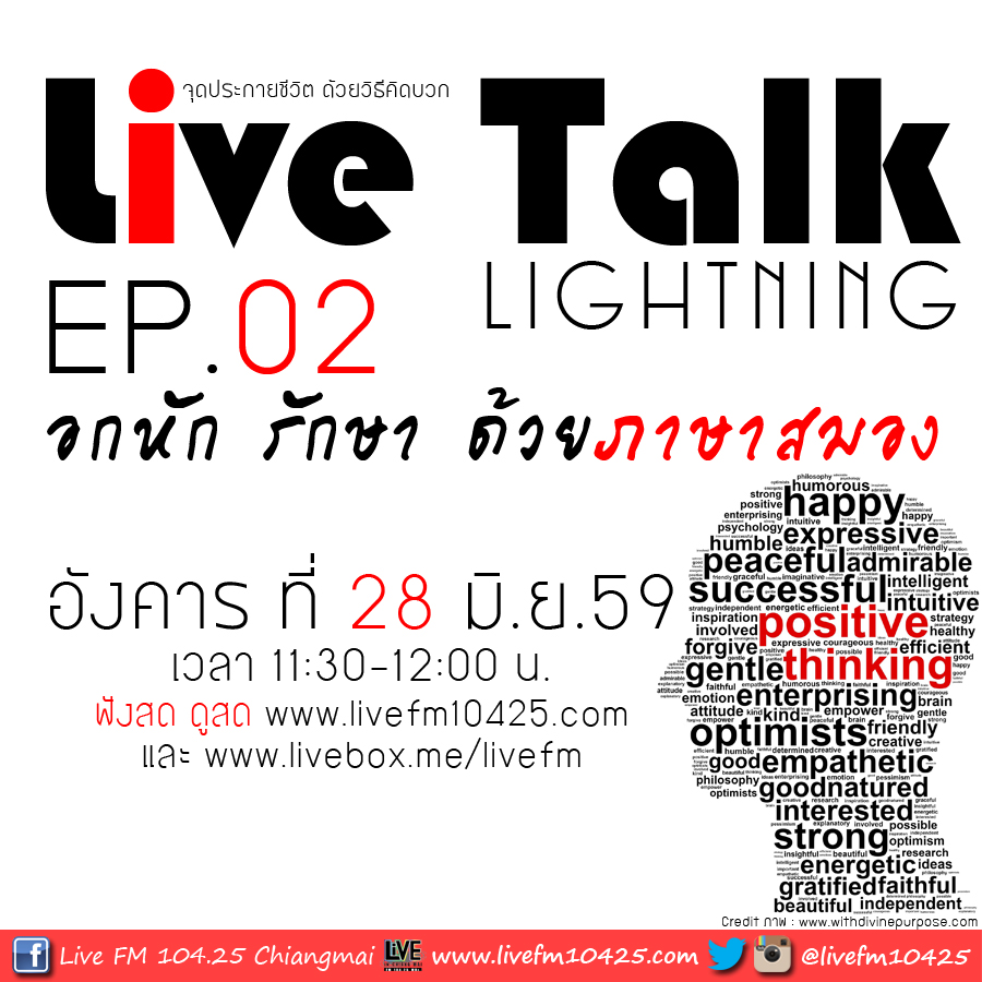 Live Talk Lightning จุดประกายชีวิต ด้วยวิธีคิดบวก ออกอากาศ EP.02 ตอน "อกหัก รักษา ด้วยภาษาสมอง" วันอังคาร ที่ 28 มิถุนายน 255...