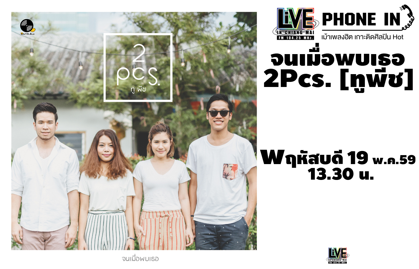 Live Phone In เม้าเพลงฮิต เกาะติดศิลปินฮอต เปิดไมค์ต้อนรับศิลปินวง 2Pcs. (ทูพีช) มาพร้อมกับซิงเกิ้ล "จนเมื่อพบเธอ" เป็นเพลงที...