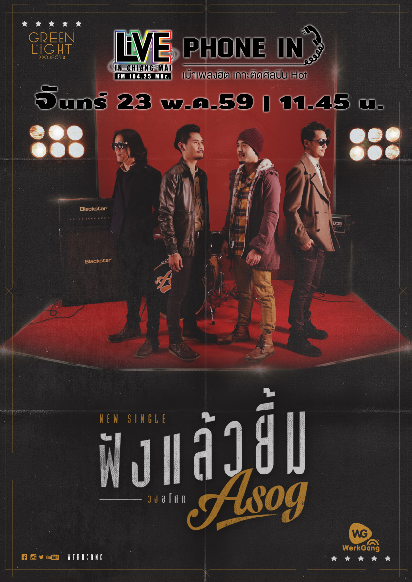 Live Phone In เม้าเพลงฮิต เกาะติดศิลปินฮอต เปิดไมค์ต้อนรับศิลปิน "ASOG" (อโศก) เป็นการรวมตัวกันของสมาชิกนักดนตรีที่มากด้วยประสบการ...