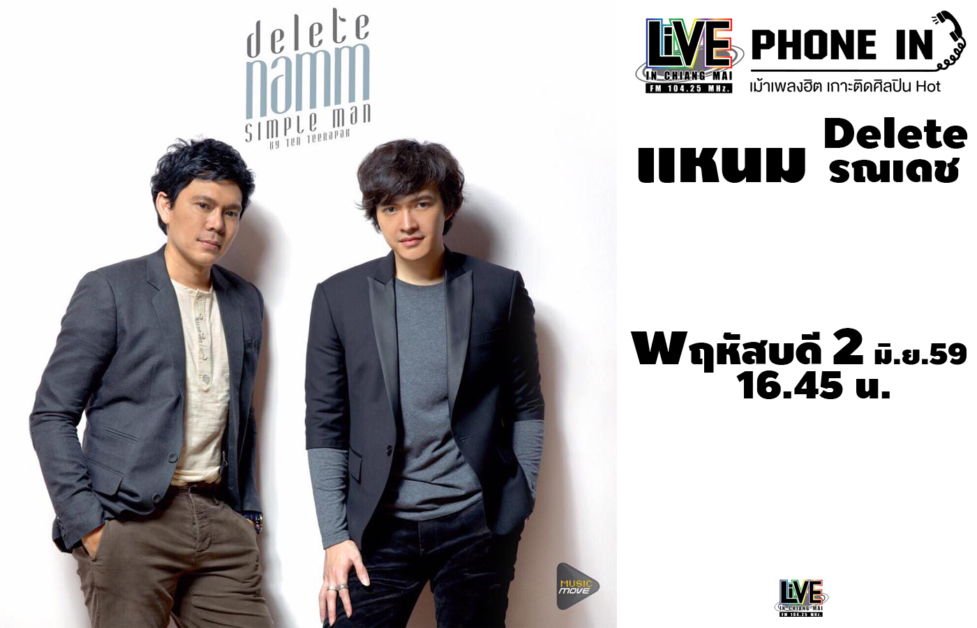 Live Phone In เม้าเพลงฮิต เกาะติดศิลปินฮอต เปิดไมค์ต้อนรับศิลปิน แหนม รณเดช และซิงเกิ้ล DELETE พร้อมเปิดตัวโปรเจคท์ Simple man by ...