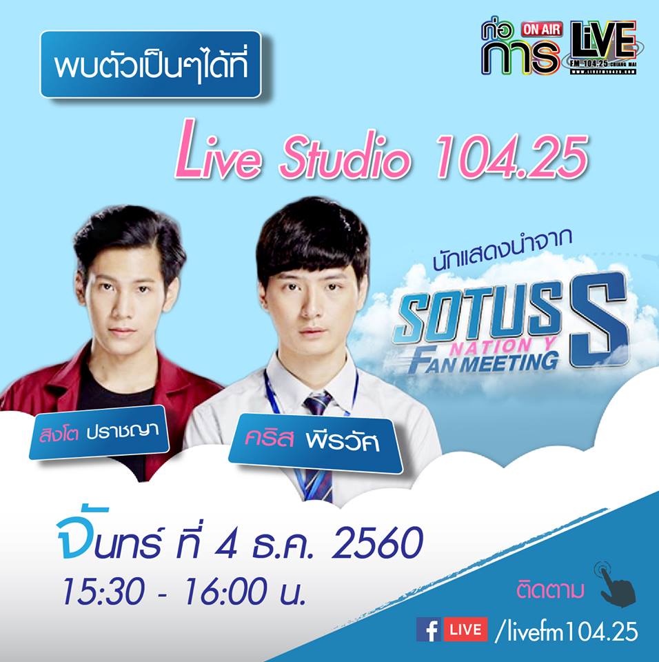 ภารกิจก่อการไลฟ์เปิดบ้านก่อการกับนักแสดงนำจาก Sotus S The Series ที่จะยกทีมมาว้าก!! ถึงเชียงใหม่ นำโดยคริส พีรวัสและสิงโต ปราชญา พ...