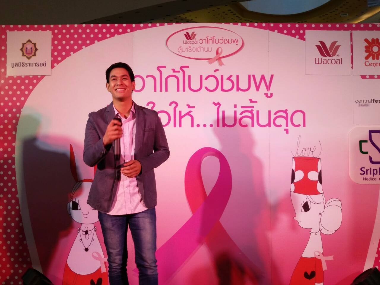 เมื่อวันเสาร์ ที่ 10 ต.ค.ที่ผ่านมา ผลิตภัณฑ์ชุดชั้นใน "วาโก้" ร่วมกับเซ็นทรัลเฟสติวัล เชียงใหม่ จัดงาน "วาโก้โบว์ชมพู ร้อยใจให้… ไม่สิ้นสุด" Beauty Inside เพื่อรณรงค์ให้ผู้หญิงไทยตระหนักถึงภัยมะเร็งเต้านม พร้อมเชิญร่วมกิจกรรมทำบุญซื้อของที่ระลึก หารายได้สมทบทุนมูลนิธิรามาธิบดี เพื่อช่วยเหลือผู้ป่วยมะเร็งเต้านมยากไร้ พร้อมช้อปสินค้าผลิตภัณฑ์ชุดชั้นในวาโก้ ลดสูงสุดถึง 70 % และร่วมตรวจสุขภาพเบื้องต้นโดยทีมคณะแพทย์ จากศูนย์ศรีพัฒน์ คณะแพทยศาสตร์ มช. โดยได้รับเกียรติจาก ผศ.พญ.ไพลิน คงมีผล แพทย์จากโรงพยาบาลมหาราชนครเชียงใหม่ มาร่วมพูดคุยกับเรื่องการดูแลสุขภาพให้ห่างไกลจากภัยมะเร็งเต้านม พร้อมทั้งศิลปินหนุ่ม "อ๋อม อรรคพันธ์" ที่มาสร้างความสนุกสนานให้ผู้เข้าร่วมงานและแฟนคลับ อีกทั้งได้มีการจำหน่าย wacoal Pink Ribbon Souvenir ภายในงานเพื่อนำเงินสมทบทุนช่วยเหลือผู้ป่วยมะเร็งเต้านมที่ยากไร้ ภายในงานคุณธมลวรรณ สารกาศ ผู้จัดการแผนกชุดชั้นในวาโก้ บริษัท ไอ.ซี.ซี อินเตอร์เนชั่นแนล จำกัด (มหาชน) ได้มอบชุดชั้นใน จำนวน 100 ชุด มูลค่ากว่า 155,000 บาท เพื่อมอบให้กับผู้ป่วยมะเร็งเต้านม อีกด้วย
