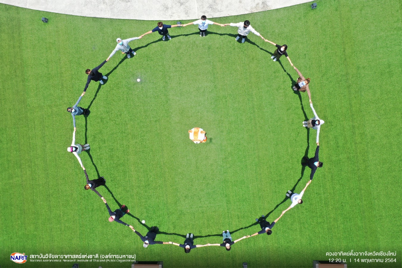 สถาบันวิจัยดาราศาสตร์แห่งชาติ (องค์การมหาชน) (สดร.) เผยภาพเงาขณะเกิดปรากฏการณ์ดวงอาทิตย์ตั้งฉาก เมื่อวันที่ 14 พ.ค.64 เวลา 12.20 น. ณ จังหวัดเชียงใหม่ เวลาดังกล่าวดวงอาทิตย์ได้เคลื่อนผ่านจุดกลางศีรษะ เงาตกอยู่ใต้เท้าพอดี รวมถึงเงาของวัตถุต่างๆ อยู่ในระนาบเดียวกับรูปร่างของวัตถุเสมือนไร้เงา