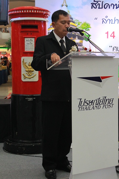 งานสัปดาห์สากลแห่งการเขียนจดหมายประจำปี2556 ลำปางหนาวมาก...เขียนจดหมายถึงพ่อบ้างหนา ของบริษัทไปรษณีย์ไทย จำกัด ที่ส่งเสริมให้คนหันมาสนใจการเขียนจดหมายและรู้จักเรื่องราวของไปษณีย์ไทยมากยิ่งขึ้น ซึ่งงานนี้ เริ่มตั้งแต่ 14-17 พฤศจิกายน 2556ที่ศูนย์การค้าเซ็นทรัล พลาซ่า ลำปาง ในวันเปิดงานได้รับเกียรติจากท่านผู้ว่าราชการจังหวัดลำปาง นายธานินทร์ สุภาแสนมาเป็นประธานเปิดงาน ภายในงานมีนิทรรศการความเป็นมาของกิจการไปรษณีย์ไทยที่มีอายุครบ 130ปีและ 10ปี บริษัท ไปรษณีย์ไทย จำกัด นิทรรศการ แสตมป์ของแต่ละประเทศในกลุ่มอาเซียน ตู้ไปรษณีย์ของ 10 ประเทศ อาเซียน จำหน่ายของที่ระลึกจากทางไปรษณีย์ กิจกรรมจาก EMS ไปรษณีย์ด่วนพิเศษ มุมถ่ายภาพ และการแสดงจากน้องๆกลุ่มเยาวชนจุมสะหรี่ เกาะคา และการออกลายเซ็นของคุณปาริชาติ ทัศนเทพ ผู้ออกแบบแสตมป์ที่มาให้ความรู้และแจกลายเซ็นภายในงานด้วย