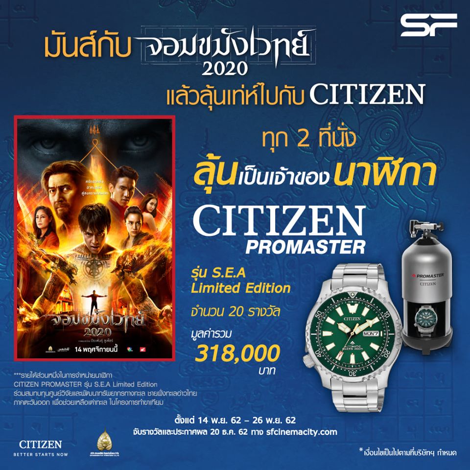 SF ให้คุณลุ้นเป็นเจ้าของนาฬิกาสุดเท่ห์ได้ง่ายๆ เพียงซื้อบัตรชมภาพยนตร์จอมขมังเวทย์ 2020 ทุก 2 ที่นั่ง ลุ้นรับนาฬิกา Citizen Promas...