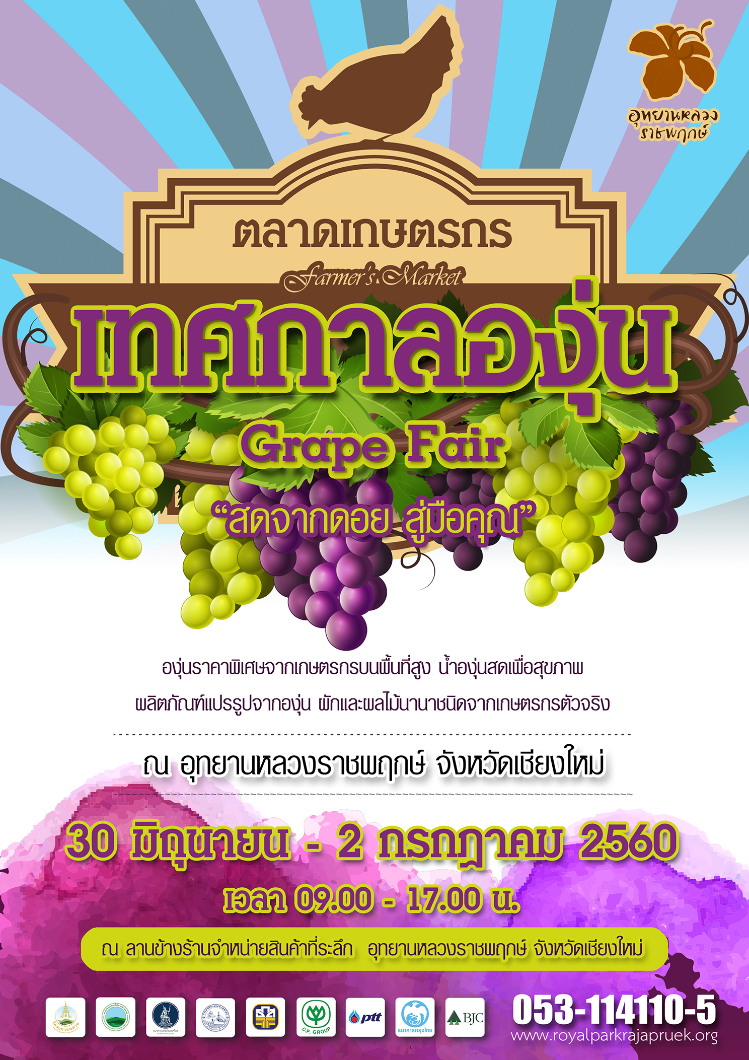 ครั้งแรกกับเทศกาลองุ่น (Grape Fair) "สดจากดอย สู่มือคุณ" ณ อุทยานหลวงราชพฤกษ์ เชียงใหม่ 3 วันเท่านั้นกับองุ่นราคาพิเศษ สดจากดอยส่ง...