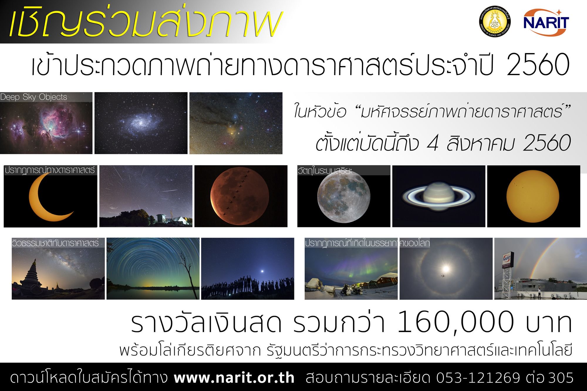 สถาบันวิจัยดาราศาสตร์แห่งชาติ (องค์การมหาชน) สดร.จัดประกวดภาพถ่ายทางดาราศาสตร์ประจำปี 2560 ครั้งที่ 10 ภายใต้หัวข้อ "มหัศจรรย์ภาพถ...